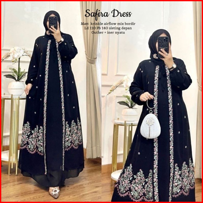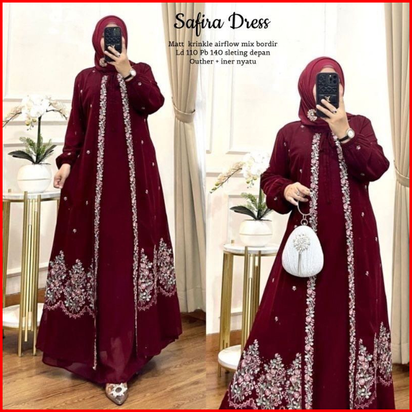 Naret Fashion Safira Maxi Dress Bahan Cringkle Airflow Aplikasi Bordir Cantik Dress Kondangan Mewah