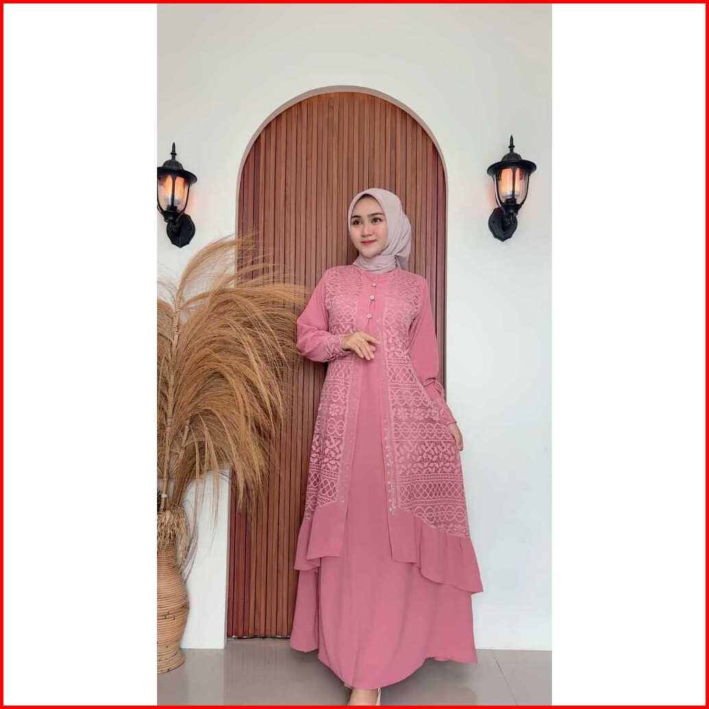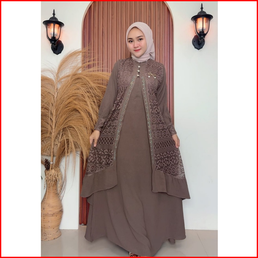 Hwf - Gamis Farasha. Gamis Brukat Mix Cringkle Airflow. Gamis Mute Swarovsky.