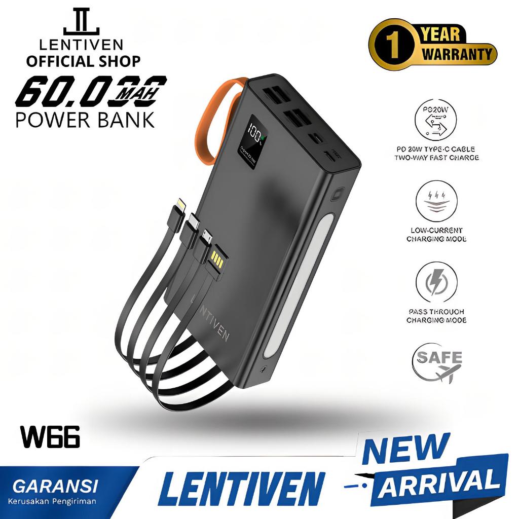 LENTIVEN PowerBank 60000mAh Fast Charging LCD with Kabel Data Type C Micro USB W66