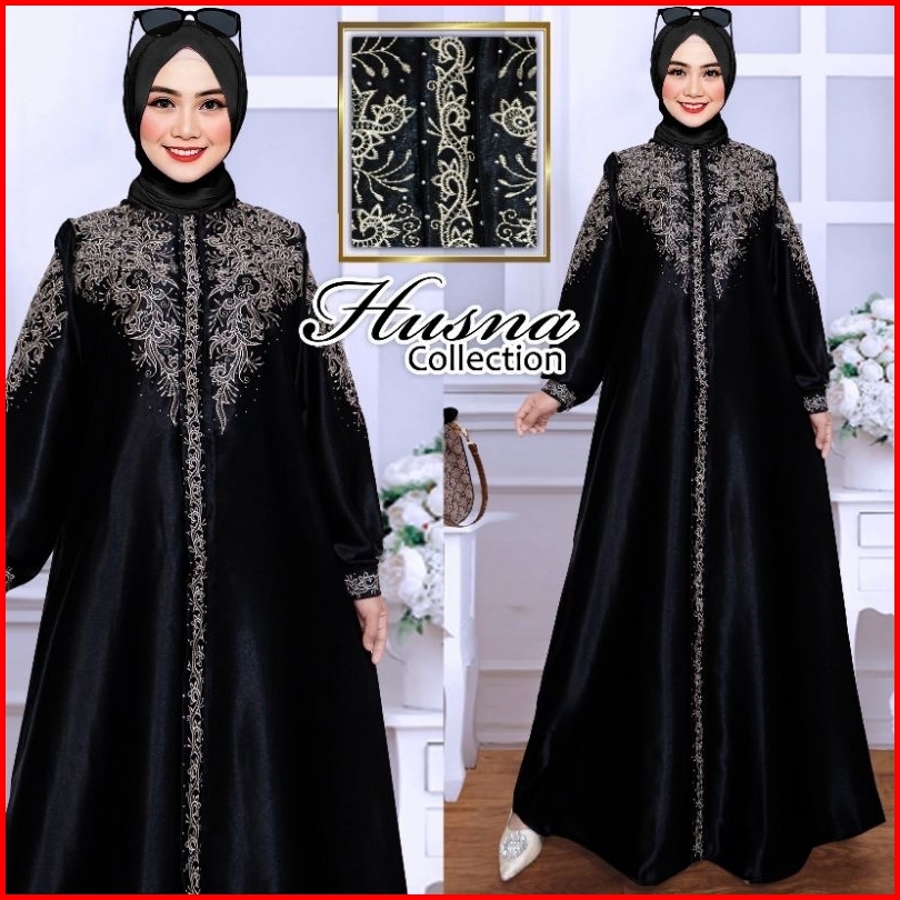 Gamis Kristal Original Bordir - Gamis Wanita Muslimah - Gamis Bordir - Semi Sutra - Gamis Silk Premium - Seragam Pesta P