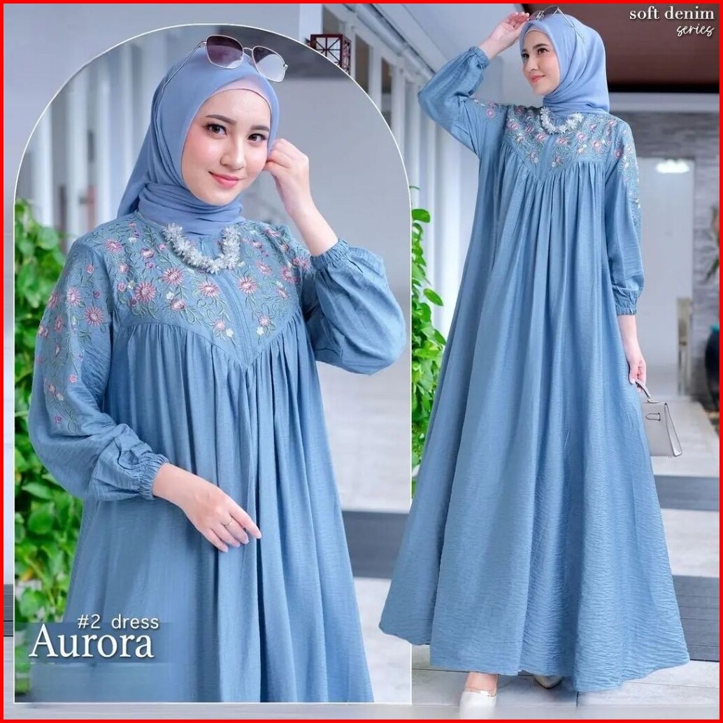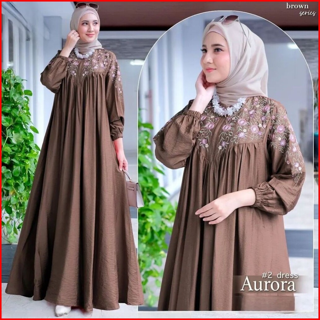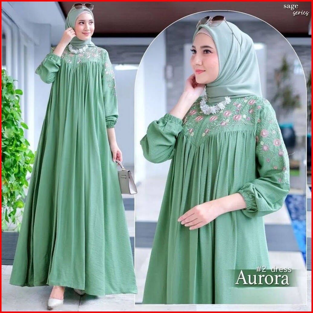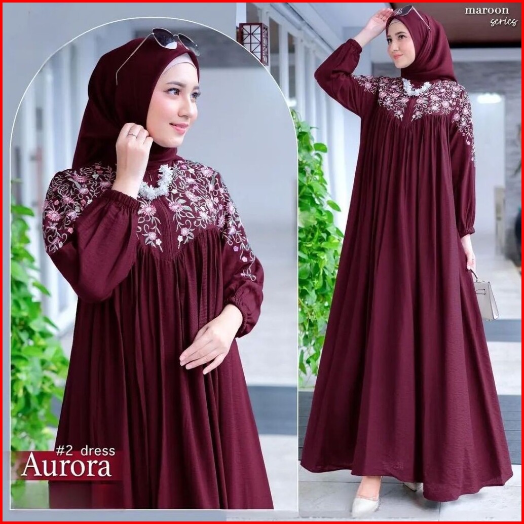 Mis Hijab Aurora Dress Gamis Bordir Terbaru Bahan Cringkel Busana Pesta Kondangan Termurah Gaun Muslim Wanita Cantik.
