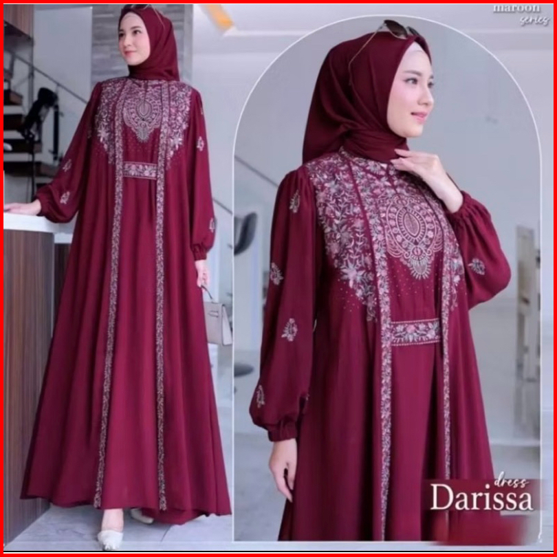 Darisa Dress Ceruty Babydoll Aplikasi Bordir Cantik Gamis Muslim Terbaru Gamis Simple Elegan Mewah Dress Kondangan