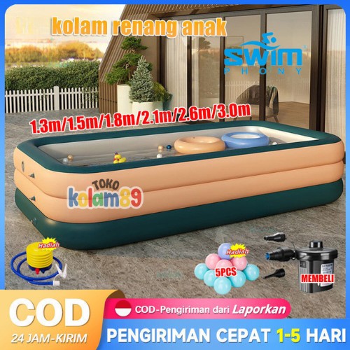 Tokokolam89【Hadiah Terbesar!!!】【Gratis Pompa + Bola*5】Kolam Renang Anak jumbo 2/3 Rings dan Bayi Tiup Karet Besar Family