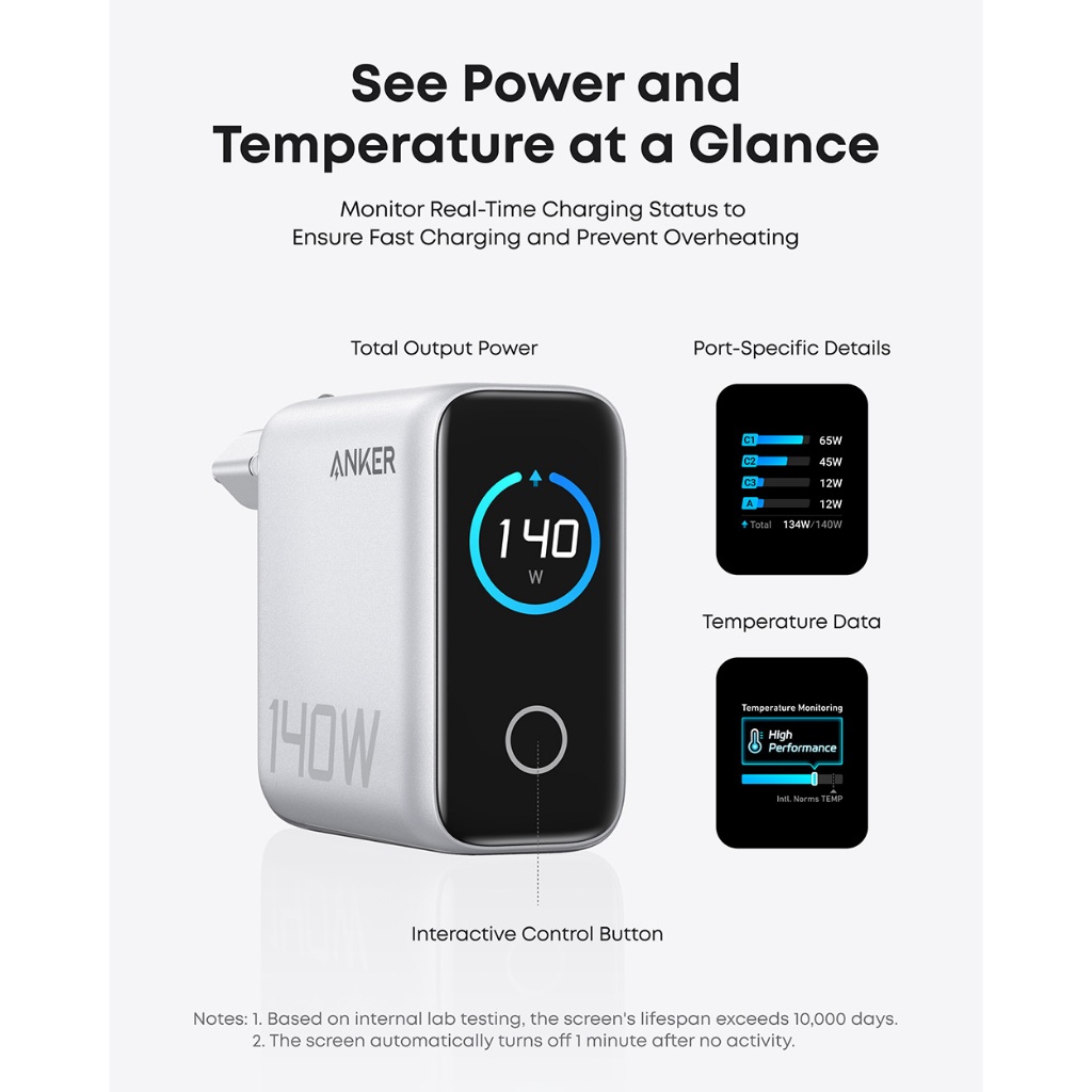 Anker Digital Display 140W Charger with Type C Cable and Powerbank 25.000 mAh 165W Built-in Retractable Cable GAN Fast Charging PPS PD3.1