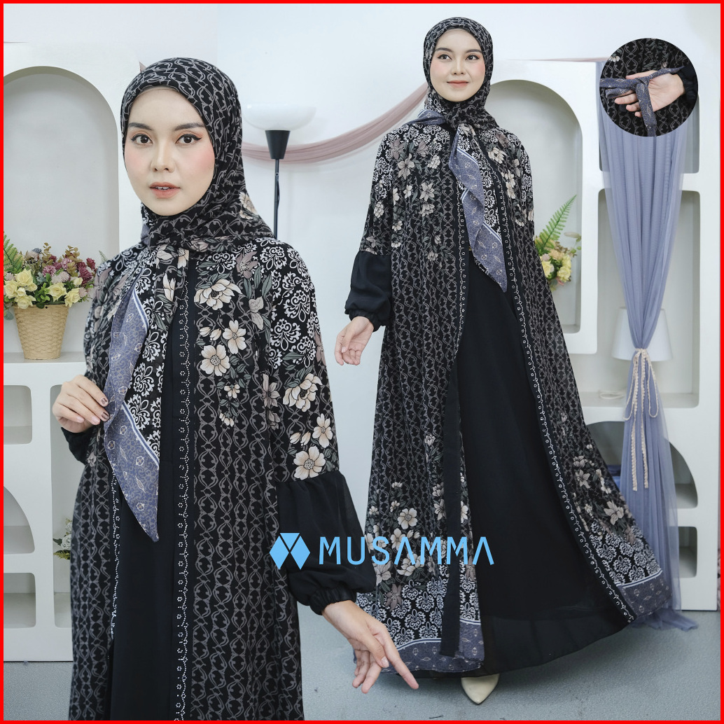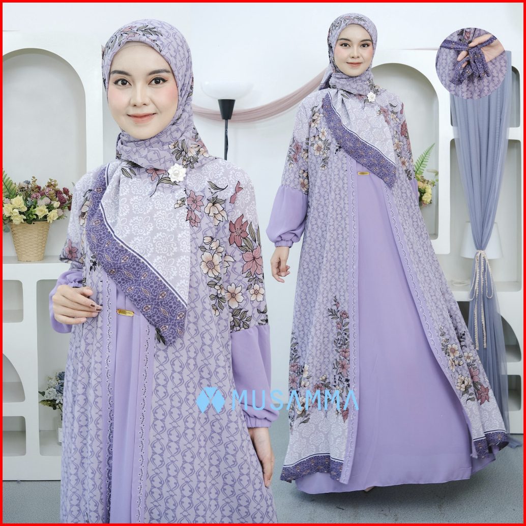 Amanda Dress - Gamis Ceruty Mix Ceruty Print Full Furing Busui Dan Wudhu Friendly Kerudung Segi Empat