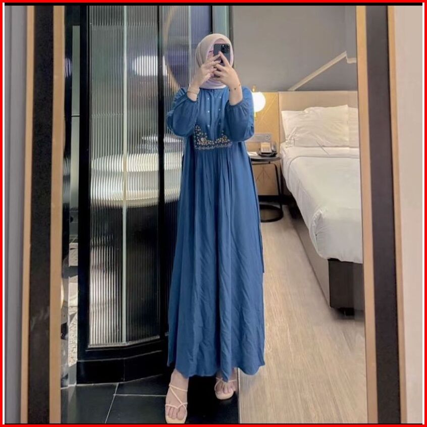 Mecca Dres Gamis Lebaran Borrdir Rayon Twill Tali Samping Premium Gamis Hari Raya Abaya Premium