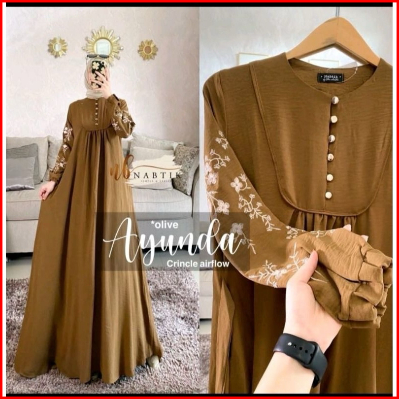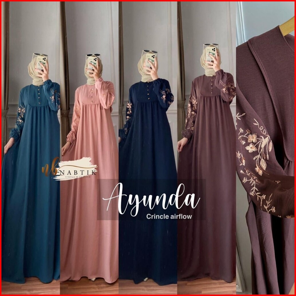 Ayunda Dress Bordir Gamis Wanita Muslimah Bahan Crinkle Airflow
