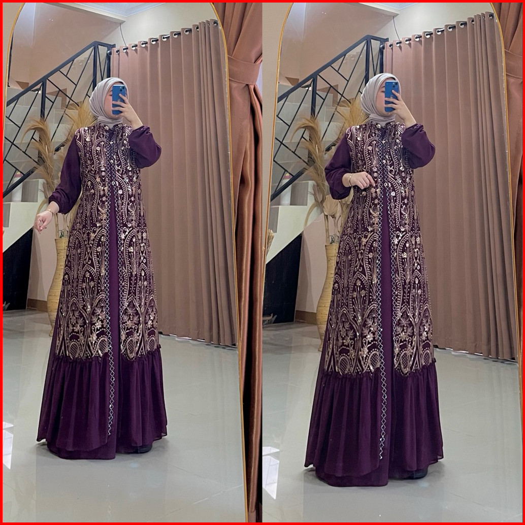 Gamis Zeera Kondangan Serutty Kombinasi Tile Bordir Two Tone Gamis Kondangan Terbaru 2025