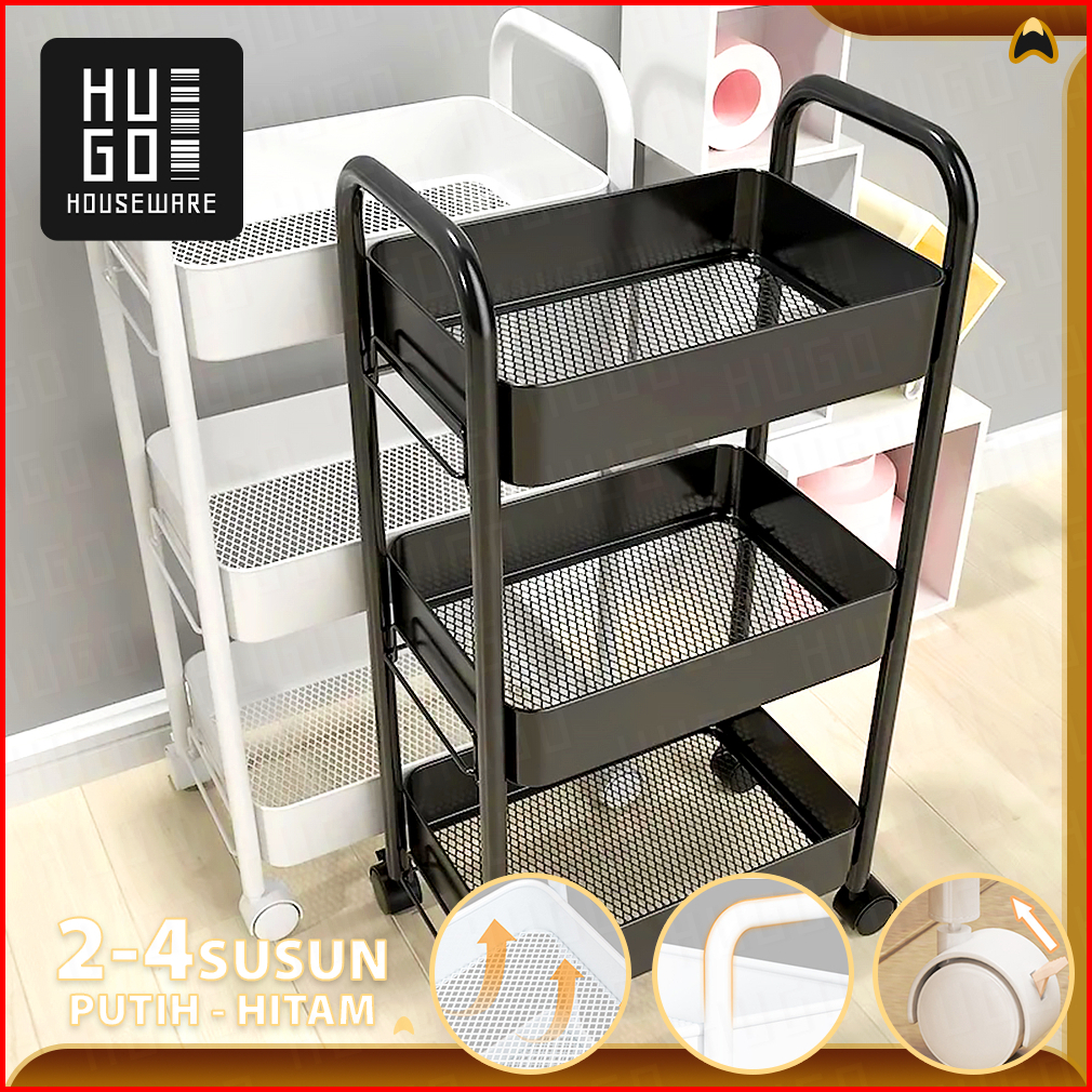 Hugo Houseware Rak Dapur Serbaguna Rak Besi Penyimpanan Bertingkat Serbaguna Rak Troli Susun Dorong