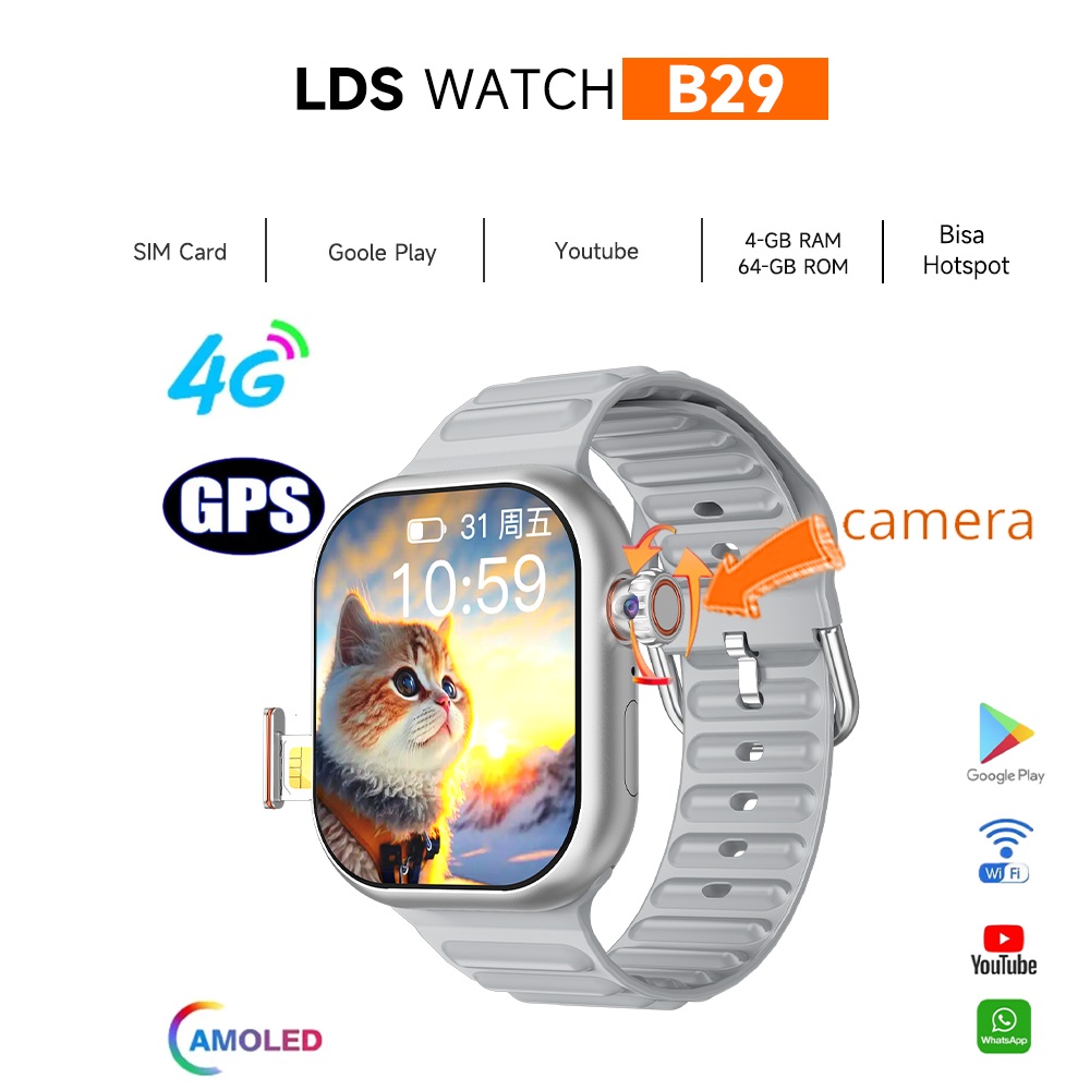 【Bisa hotspot / Bisa video Call】LDS 4G Smartwatch B29 Sim Card Wifi 6+64GB PlayStore Bluetooth GPS NFC Full Touch Screen