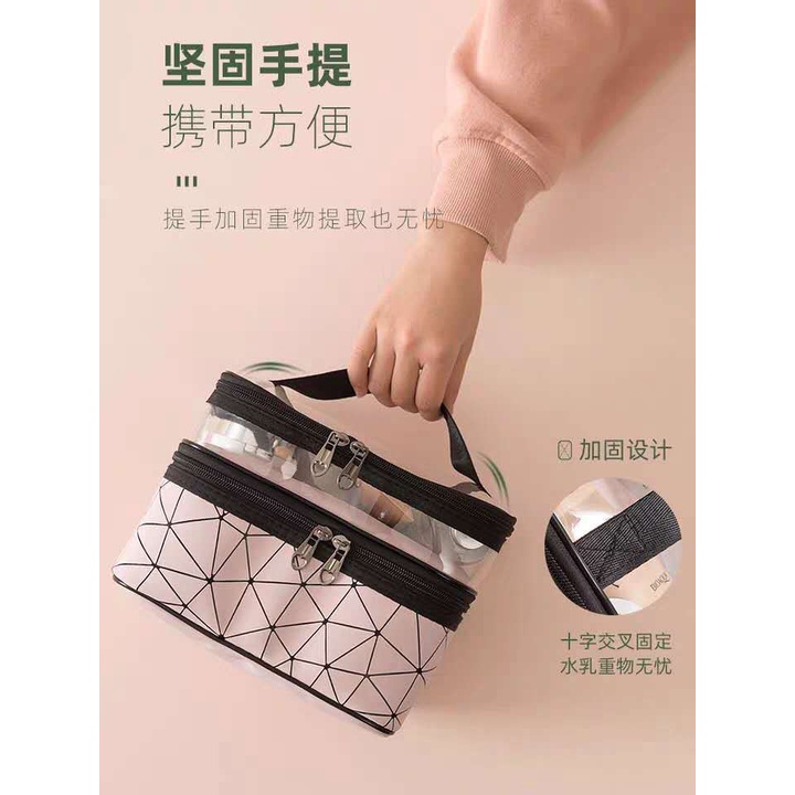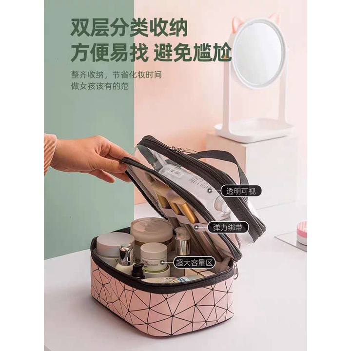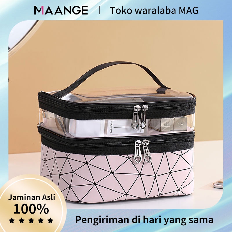 MAANGE Tas Kosmetik Dua Lapis Model Baru Kotak Kosmetik Wanita Portabel Penata Rias Wanita Multifungsi Penyimpanan Pakai