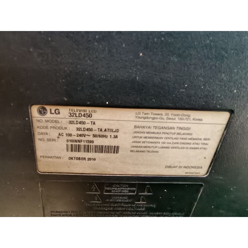 TV LCD LG 32 INCH 32INCH 32" 32LH20R BEKAS SECOND RUSAK MINUS UNTUK KANIBAL SPAREPARTS SPARE PART