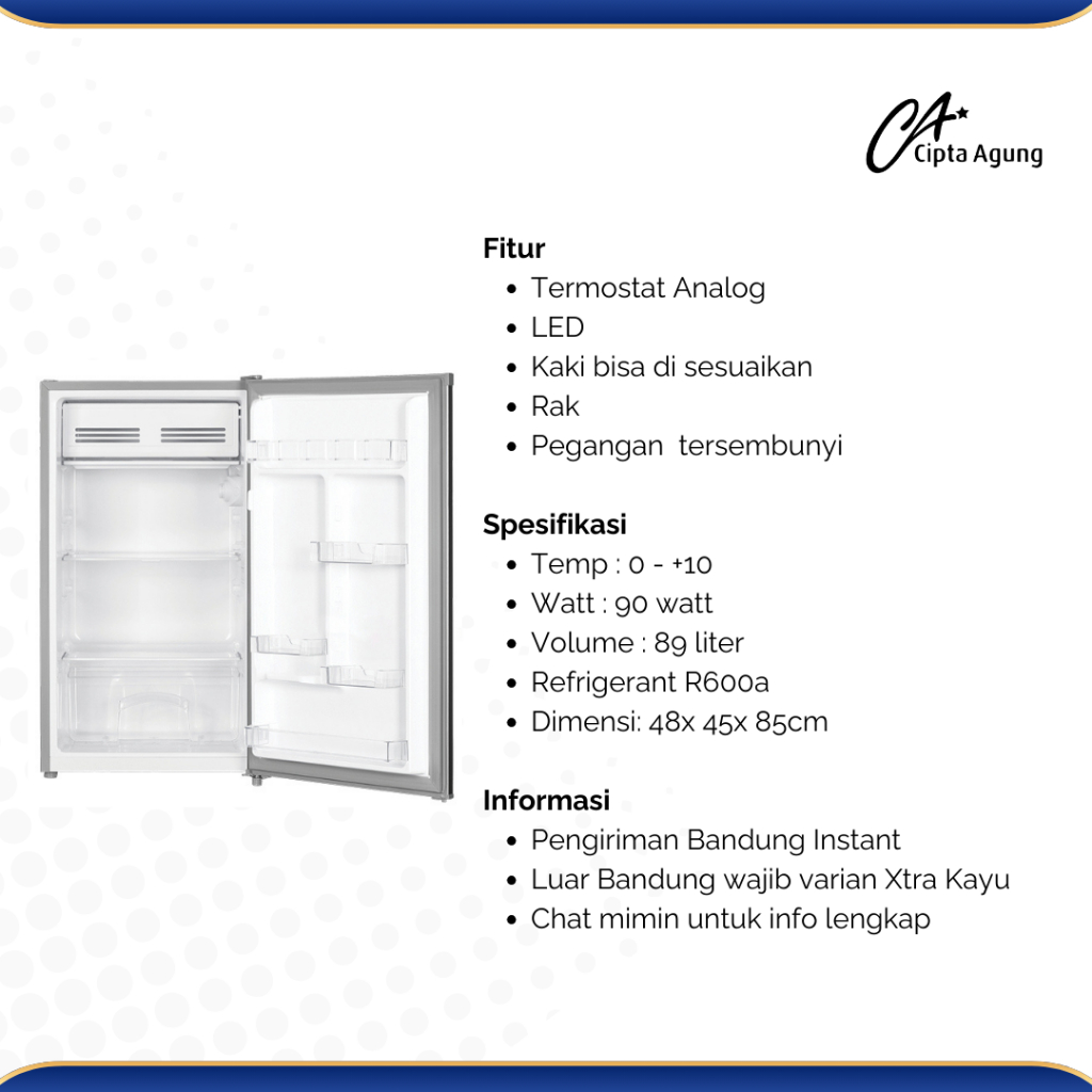 GEA KULKAS MINI BAR 89 LITER GMB91 / GMB 91 1 PINTU PORTAVLE SILVER INOX ABU MATTE GLOSSY
