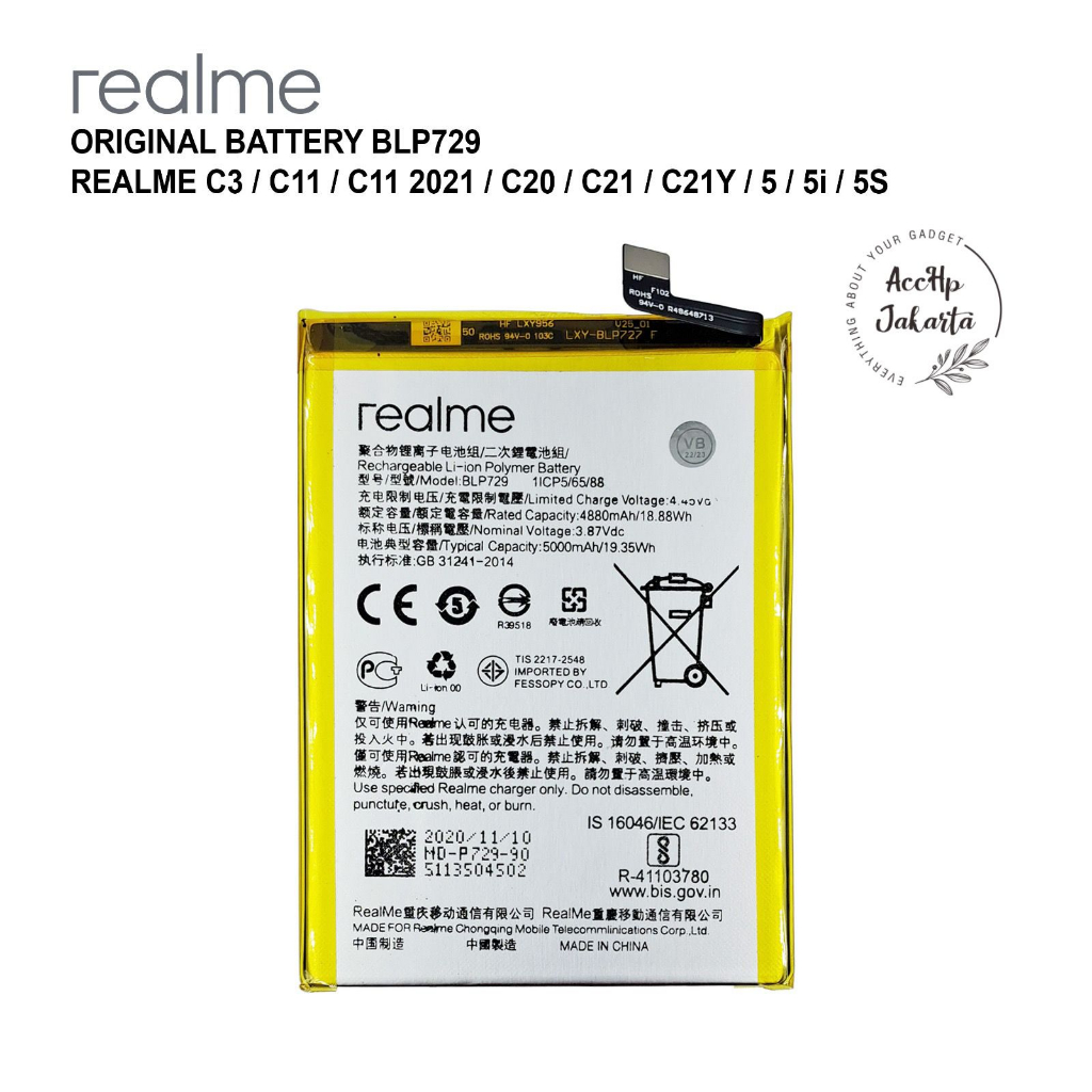 Baterai Realme C3 C11 C21 C20 C21Y C11 2021 5 5S 5i Narzo 10A Narzo 50i BLP729 BLP 729 Original 100 PERSEN