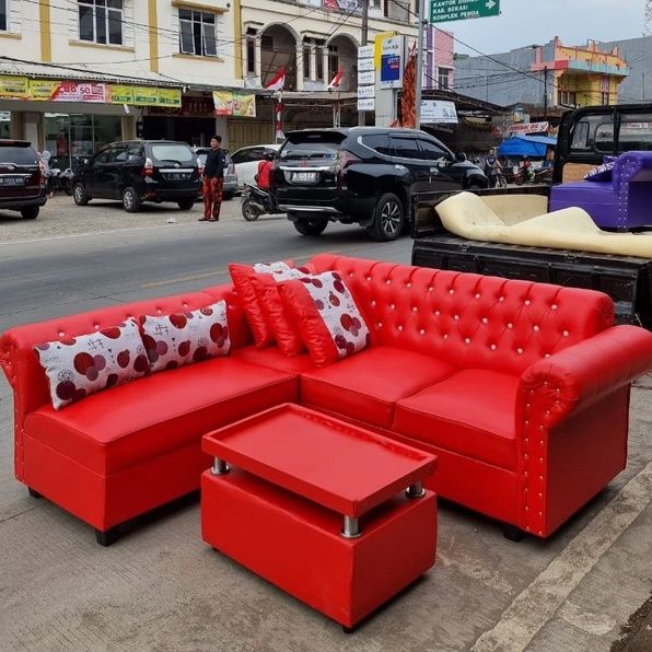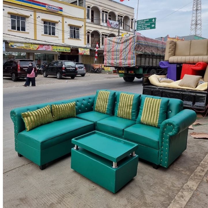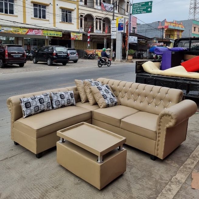PROMO!! Sofa L Putus Kancing Seribu Kulit Sinetris Sofa Ruang Tamu Minimalis Mewah Sofa Kelup Termurah (FREE ONGKIR)