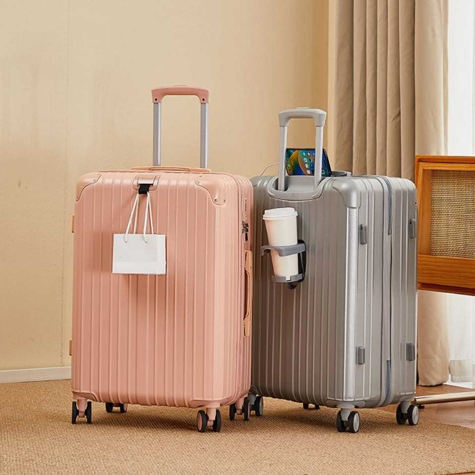 Laoshidaishu Koper kabin wanita 20 inch Koper Cup holder 24 inch koper Mini Usb charger 18 inch