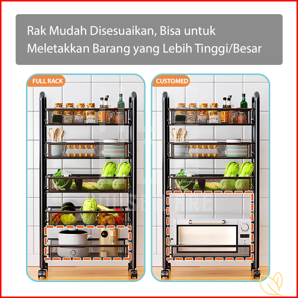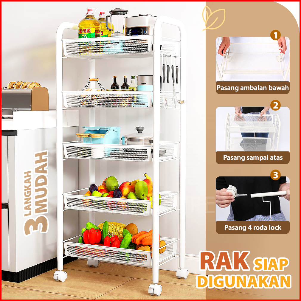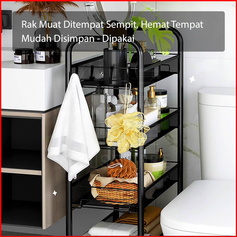 Hugo Rak Dapur Besi Serbaguna Rak Troli Besi Penyimpanan Bertingkat Rak Kamar Mandi Rak Salon Rak Besi Susun Dorong Deng