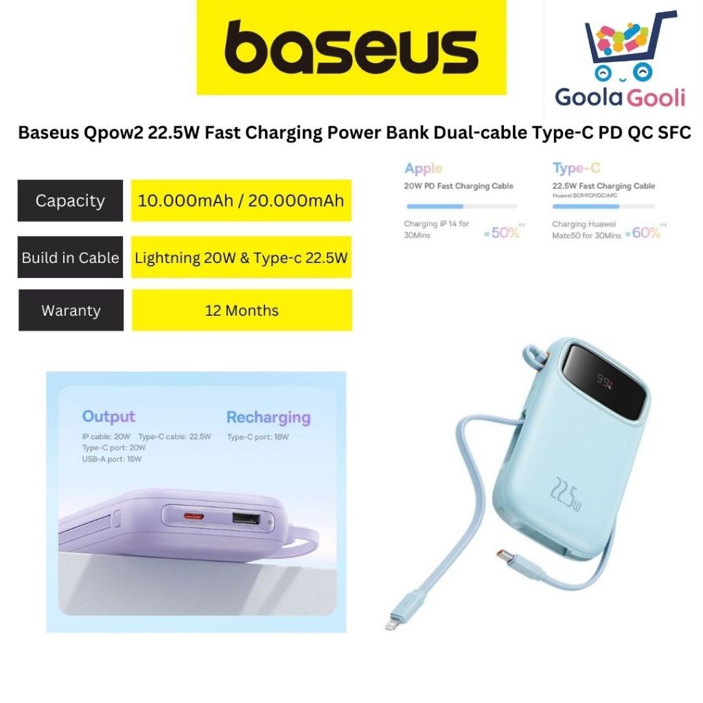 Baseus Qpow2 22.5W 20.000mAh / 10.000mAhFast Charging Power Bank Dual-cable Type-C PD QC SFC