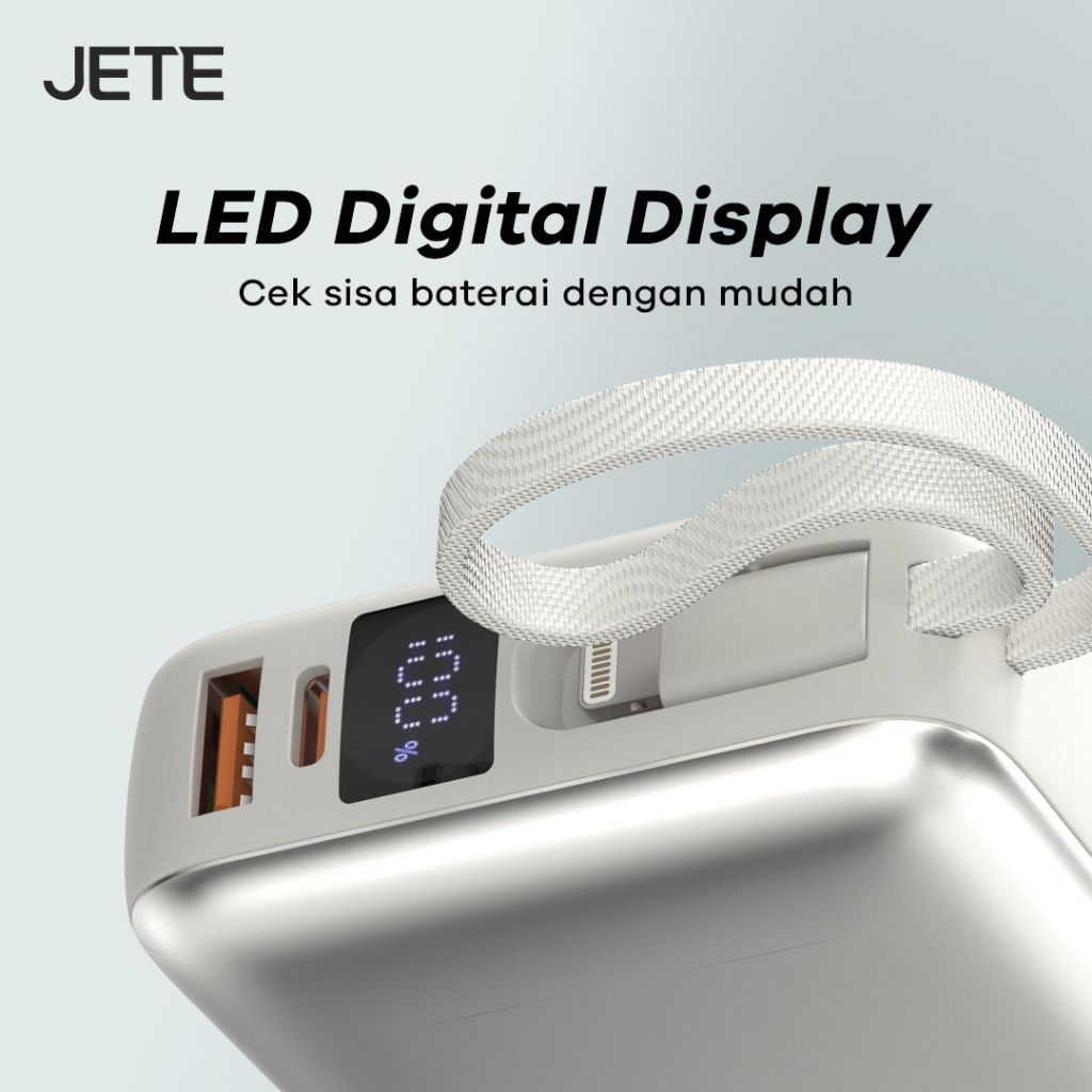 【Sertifikat CCC】JETE Powerbank B7 20000mAh 22.5W Fast Charging with LED Display Dual Cable Type C & Lightning Dual Port USB