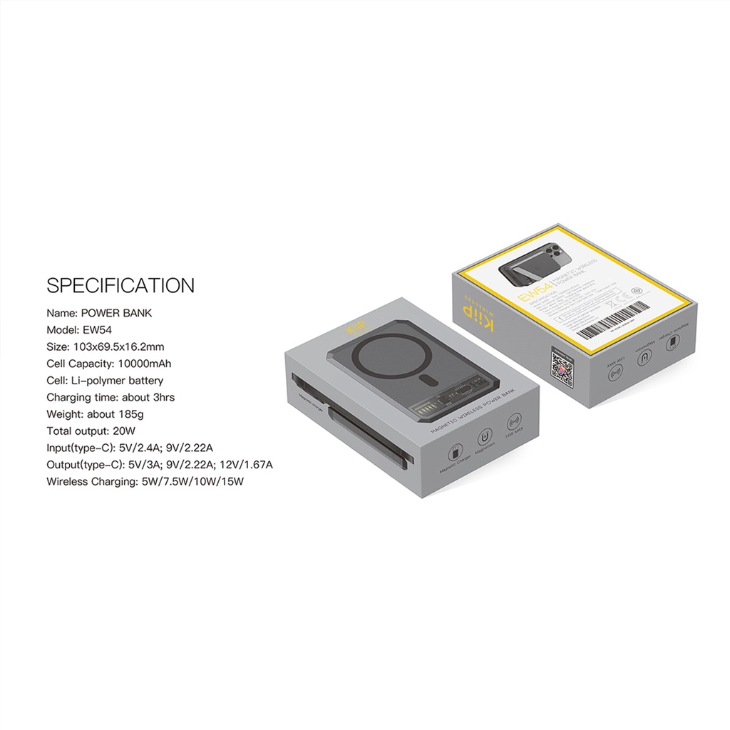 KiiP Wireless EW54 Power Bank Magnetic Magsafe 20W Fast Charging Type C PD 10000 mAh