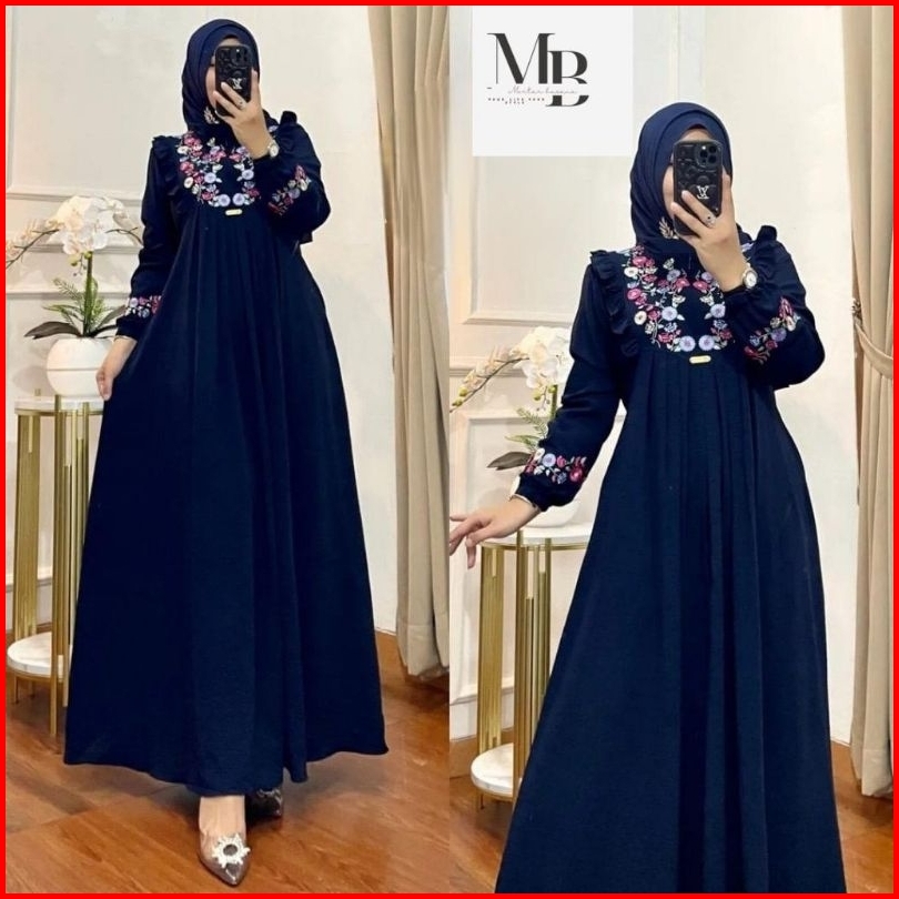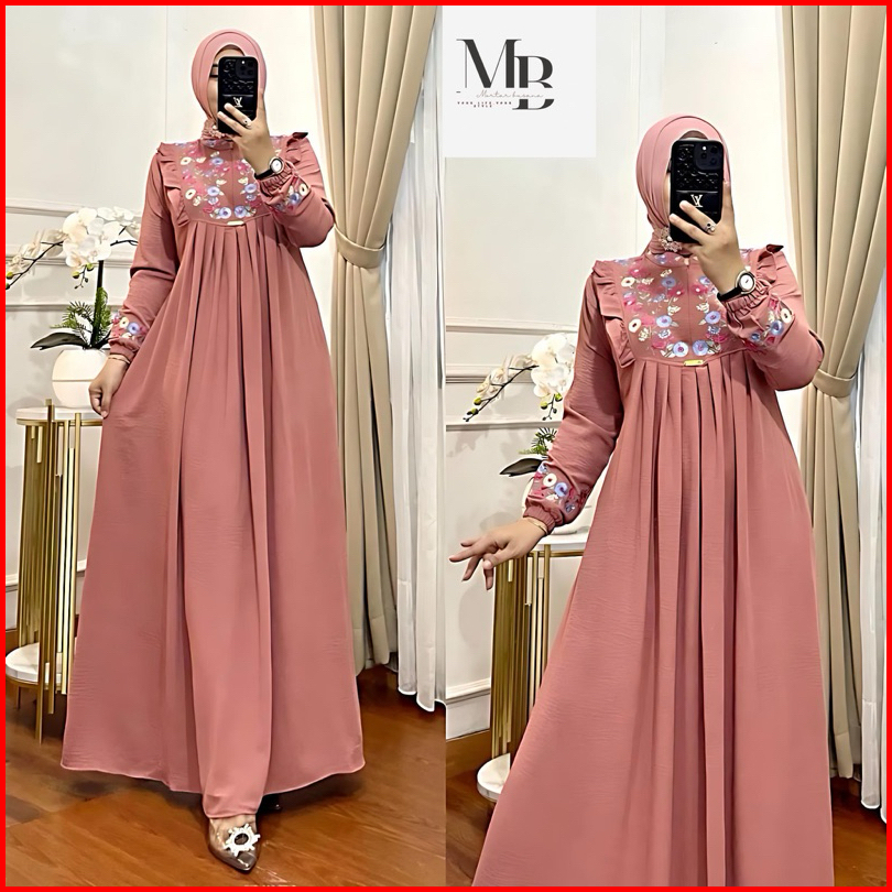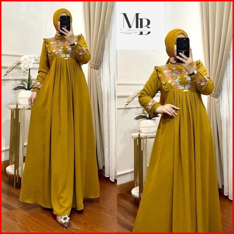 Gamis Bordir Bunga Timbul Bahan Crinkle Gamis Azizah Mewah Terbaru Termurah