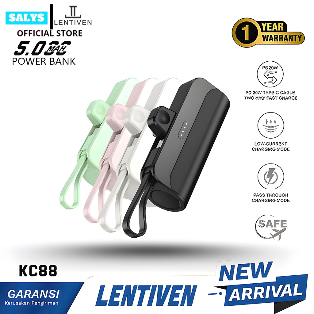 SALYS LENTIVEN Powerbank 5000MAH Mini Fast Charging SUPORT IOS TYPE C Display KC88