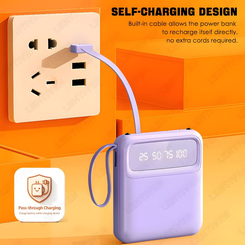 SALYS LENTIVEN 20000mAh Powerbank Mini 4 Kabel USB Fast Charging Lightning & Type C For Iphone/Android