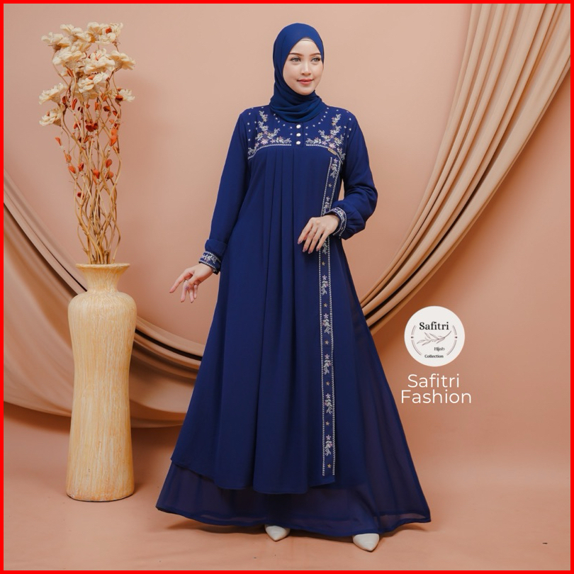 Jasmine Dress Gamis Bahan Ceruty Babydol Kombinasi Bordir Mewah Kondangan Pesta Lebaran Manasik Haji Umroh Ihram Fashion