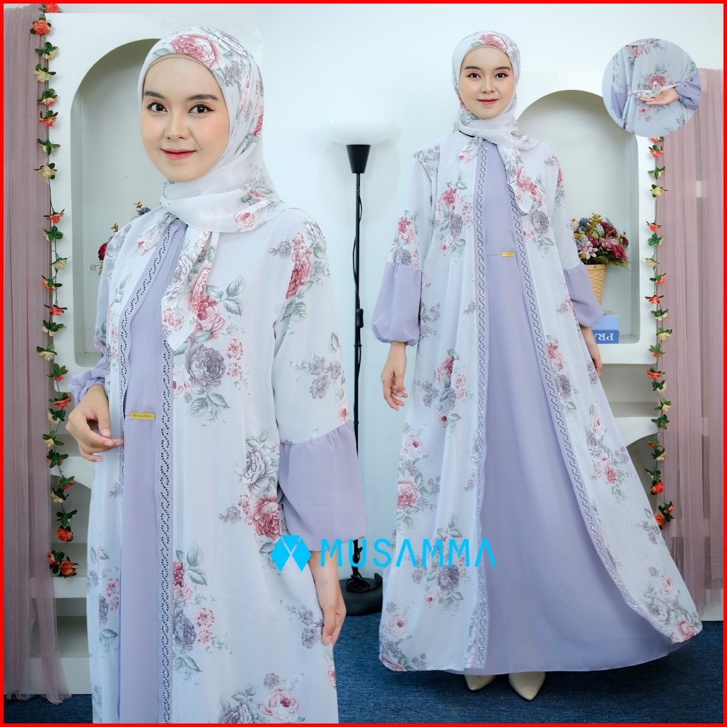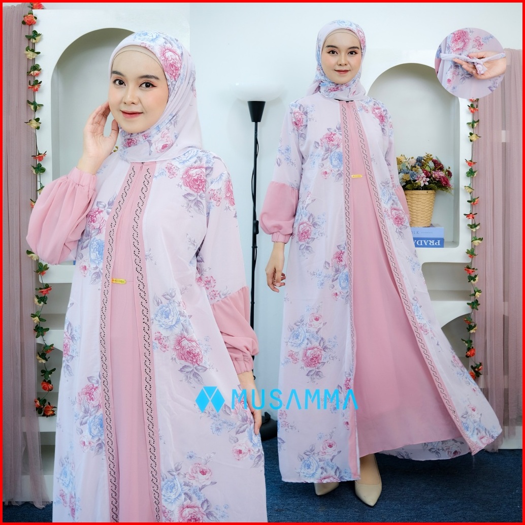 Azima Dress - Gamis Ceruty Mix Ceruty Print Full Wudhu Friendly Dan Furing