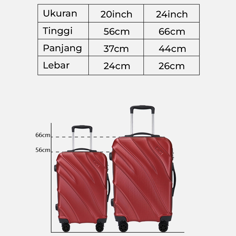 Koper Kabin & Bagasi 20 & 24 Inch – Fiber ABS, Ringan, Tahan Bentur, Roda 360° (AO-803)