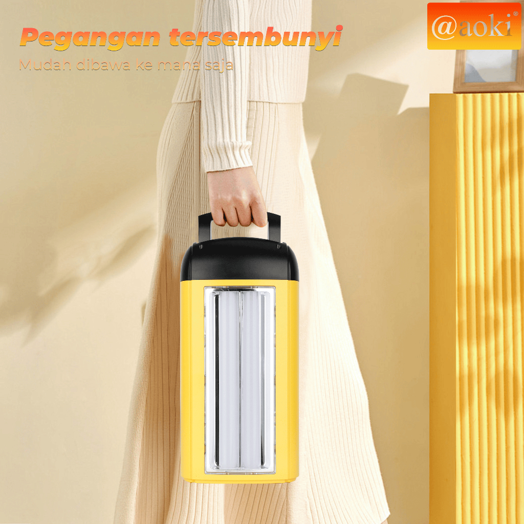 AOKI Solar Power System dengan Power Bank, Pengisian USB, 6 Port DC, dan Baterai Isi Ulang Kapasitas Tinggi Lampu Darurat Multi-fungsi