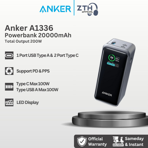 Anker GaNPrime Powerbank 20000mAh 200W 100W PPS 3 Port USB A/C A1336
