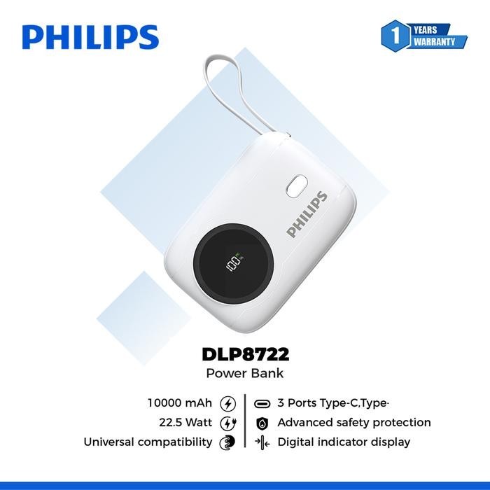 Philips DLP8722 DLP 8722 Power Bank 10000 mAh PD PPS Build in Type C and Lightning Cable