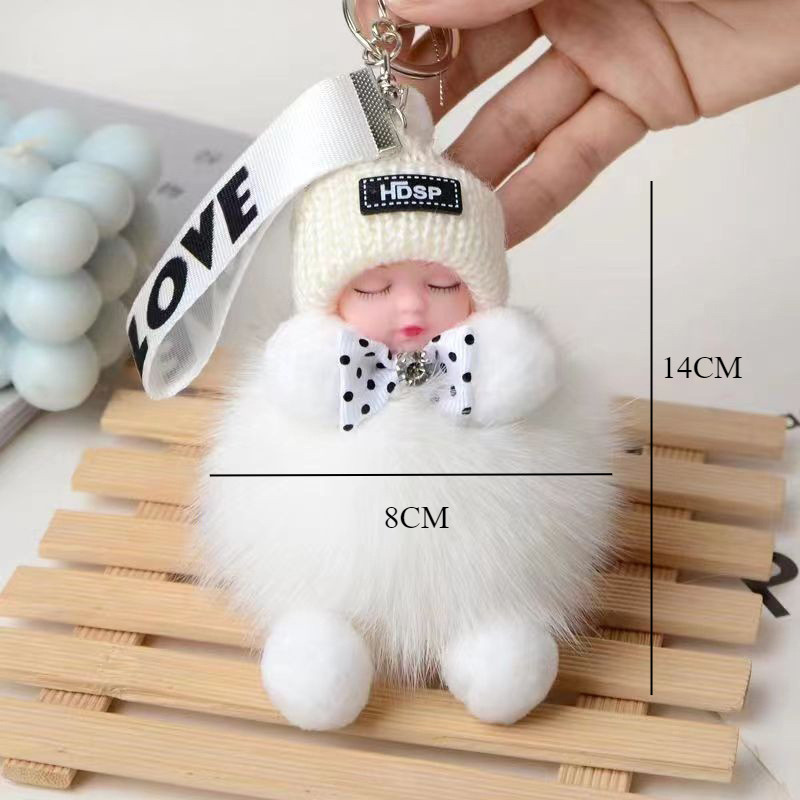 Keychain Boneka Bayi Mewah - Desain Mengantuk dengan Bulu Halus dan Imut
