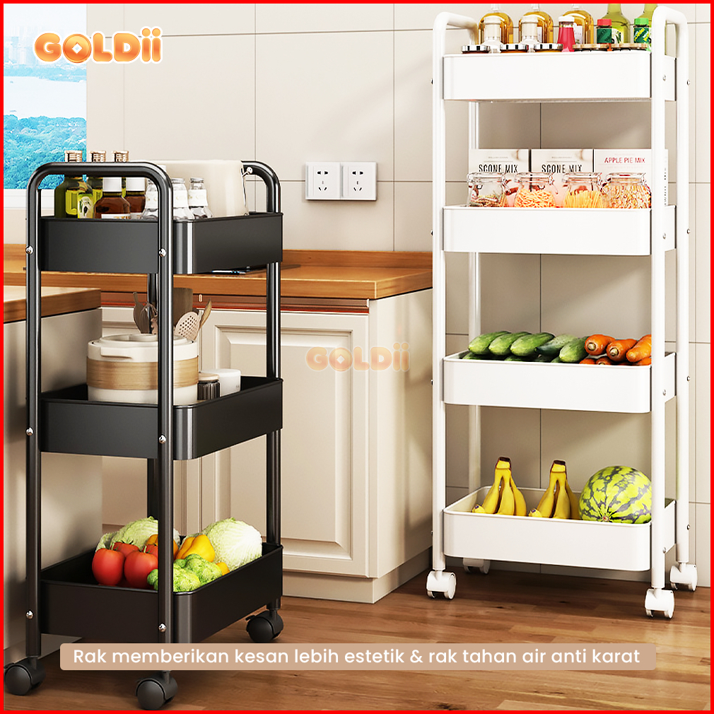 Goldii - Rak Troli Dorong Dengan Roda Susun 5 Tingkat Serbaguna Rack Dapur Bahan Besi Berkualitas