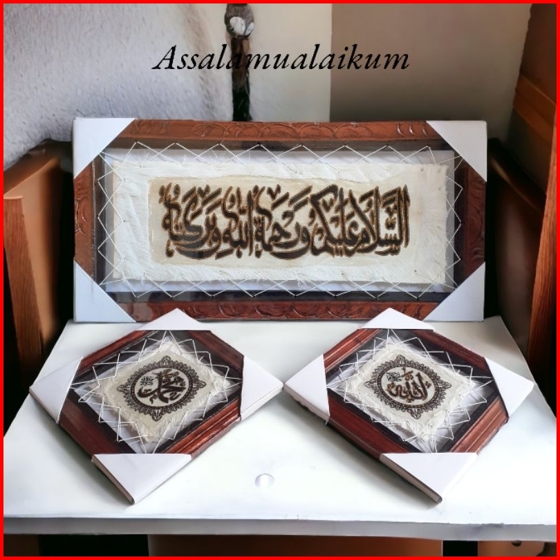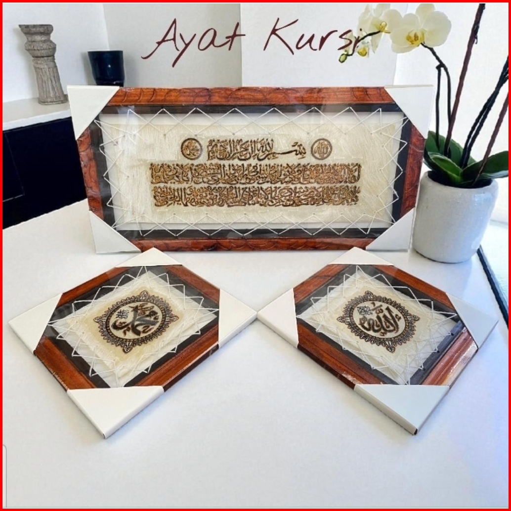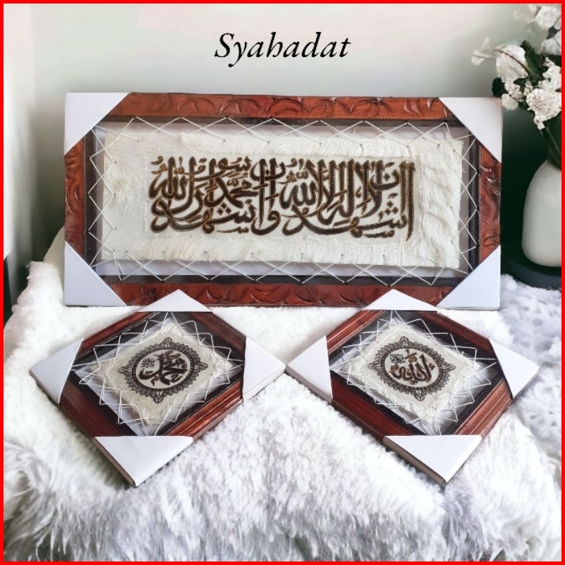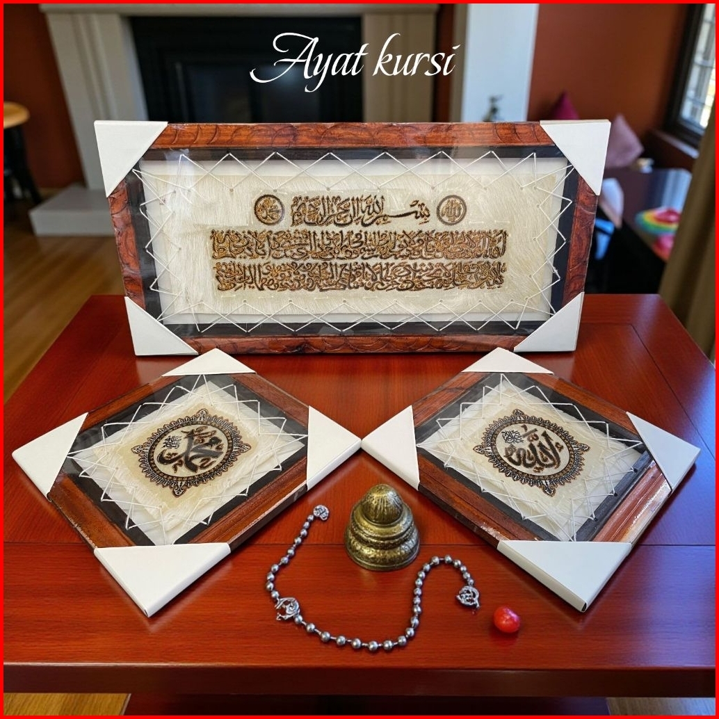 Kaligrafi Hiasan Dinding Kulit Kambing Ayat Kursi Allah Dan Muhammad 30x60cm - 1kg