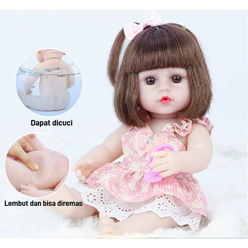 【】38cm Reborn Boneka Replika Bayi Boneka Gel Lembut Hadiah Ulang Tahun Brithday/Minum Akan minum dan buang air kecil Lem