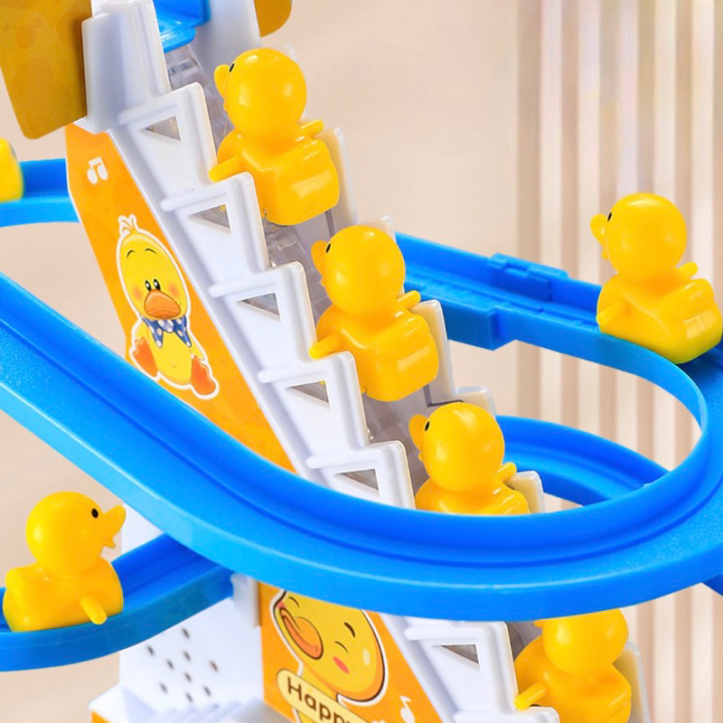 Mainan Bebek Naik Tangga - Mainan Bebek Perosotan - Mainan Small Duck Train Track - Kereta Bebek Tangga Seluncur Musik
