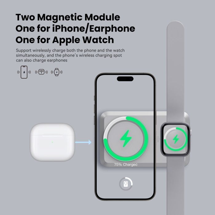 KIIP WIRELESS EW31 2IN1 POWER BANK WIRELESS MAGNETIC POWERBANK IWATCH 10000 MAH TYPE C PD