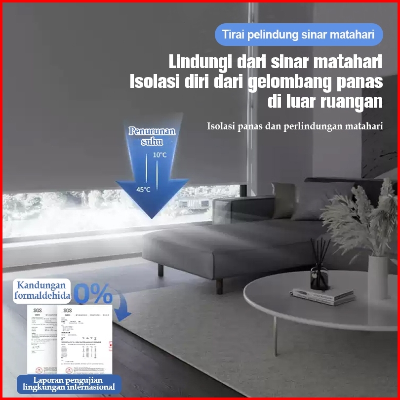 Roller Blind Tirai 80 Tingkat Naungan Tahan Air Anti Minyak Tirai Gulung Ukuran Roller Blinds Khusus