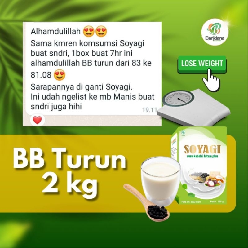 Soyagi Susu Kedelai Hitam Diet Pelangsing Menurunkan Berat Badan Alami Sehat Mengenyangkan Asli BPOM