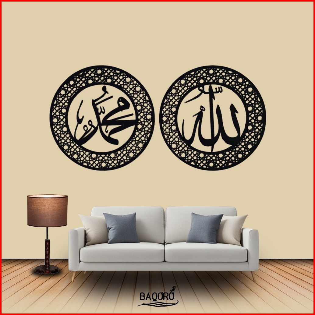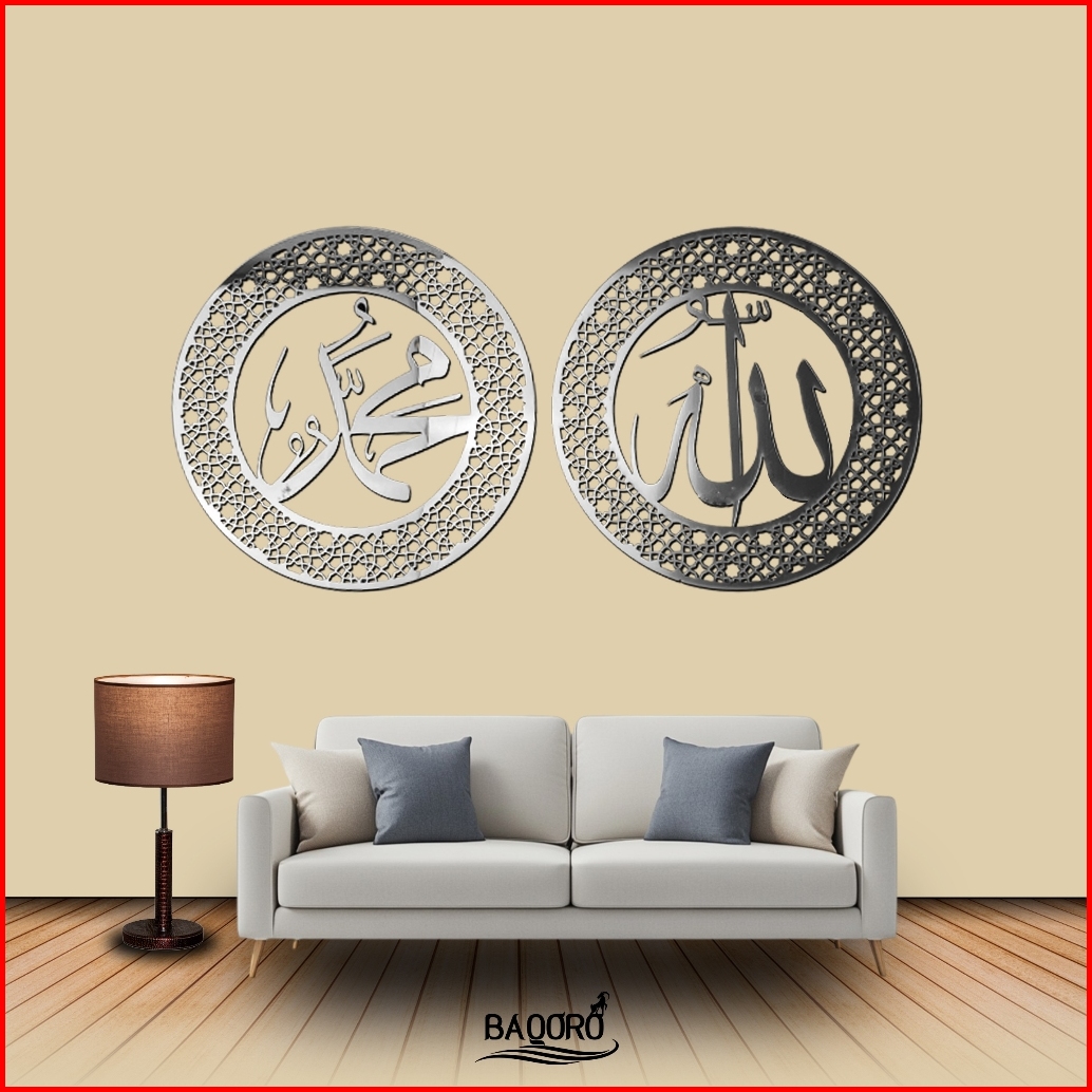 Kaligrafi Allah Muhammad Hiasan Dinding Akrilik Mirror Silver Hitam Untuk Dekorasi Pajangan Islami Untuk Ruang Tamu Mush