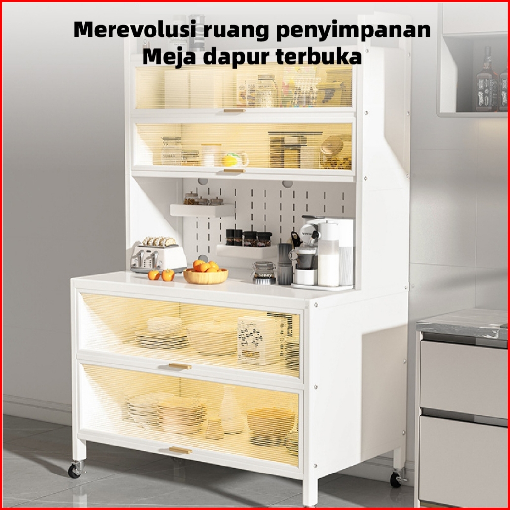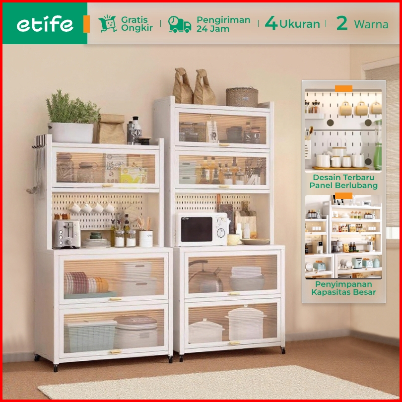 E-tife Rak Dapur Lemari Dapur Dengan Pintu Rak Penyimpanan Microwave Oven Rak Dapur Serbaguna Rak Susun Rak Piring Wasta
