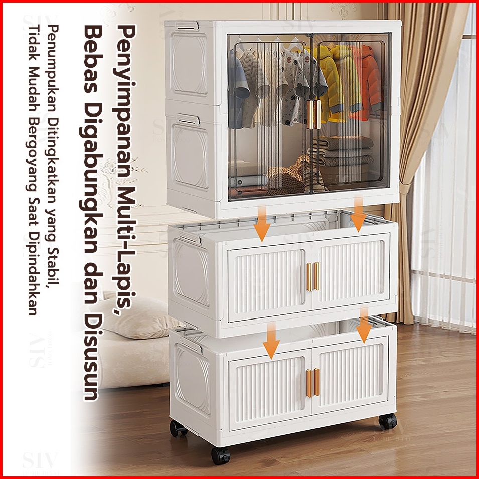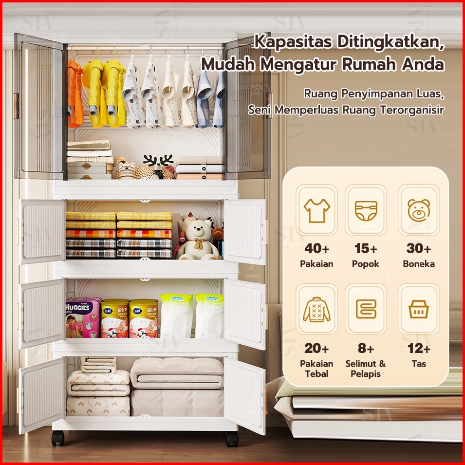 55-80cm Besarlyo Lemari Baju Bayi Anak Plastik Lemari Pakaian Estetik Minimalis Dengan Roda
