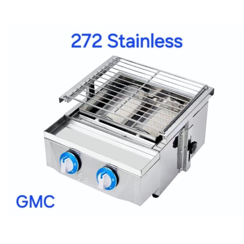 GMC Kompor Panggangan Grill BBQ Sosis Gas 2 Tungku Stainless GMC 272 Bebakaran