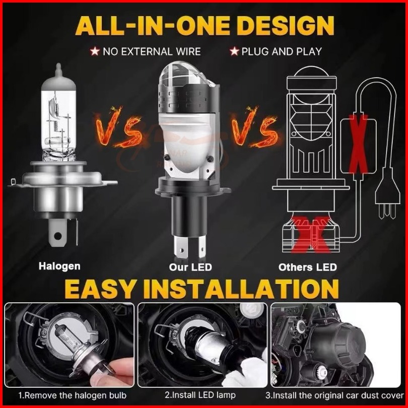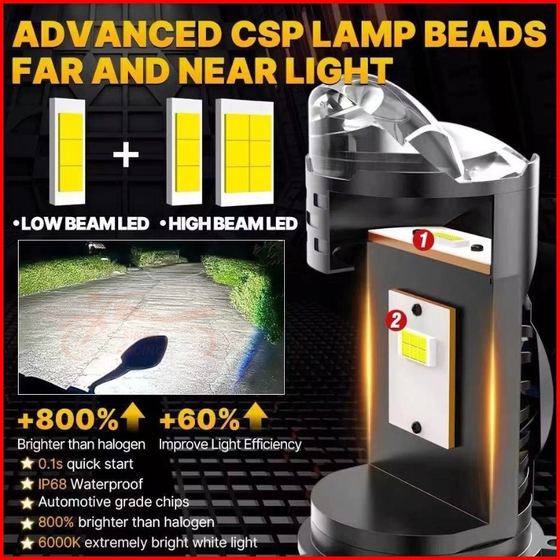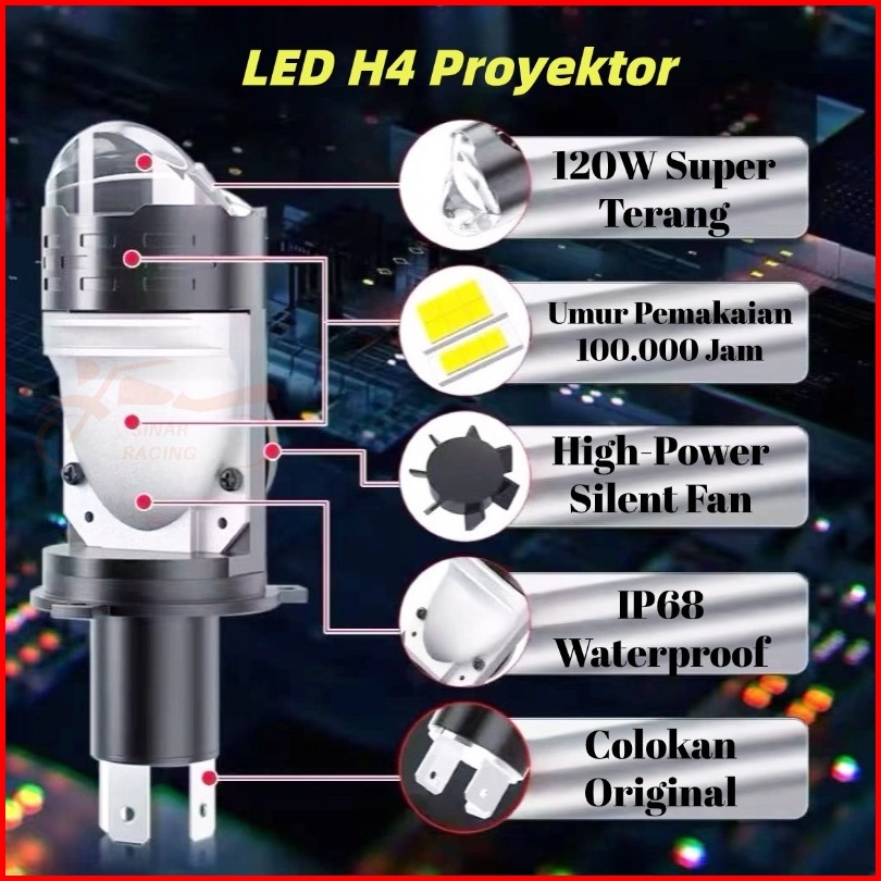 Sinar Racing Premium Lampu 120w Led H4 Proyektor High Low-devil Eye Kipas Pendingin Full Aluminium Ip68 Waterproof