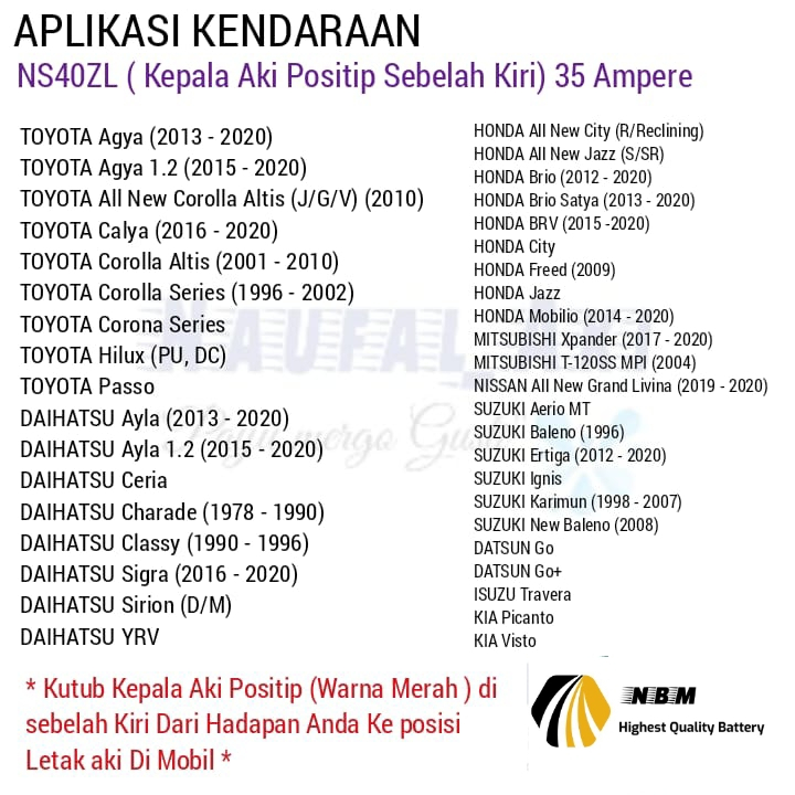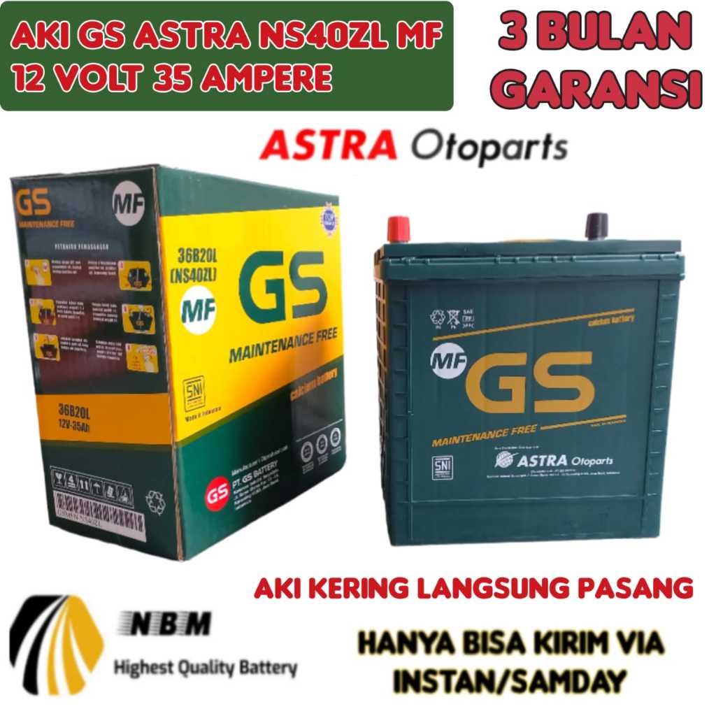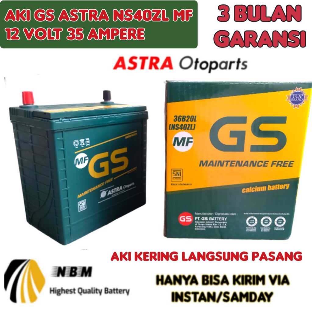 Aki Mobil Agya/Calya/Brio/Ertiga/Mobilio/Ayla GS Astra NS40ZL Aki kering 35 Ah