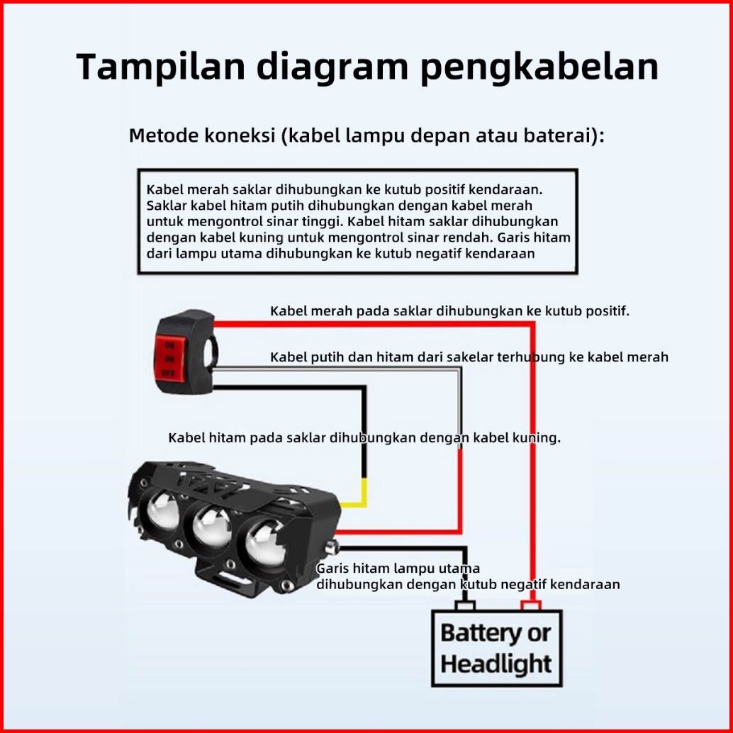 Lamleder Lampu Tembak Sorot Motor Led Laser 2 Mata Putih Kuning 2 Warna