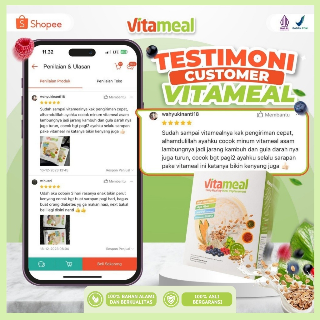 Vitameal Sereal Diet Ampuh Menurunkan Gula Darah Tinggi Diabetes Kolesterol Vitamil Vitamel Original