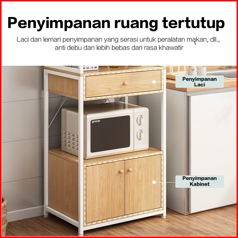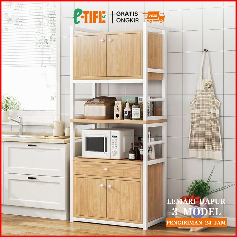 E-tife Rak Dapur Lemari Dapur Dengan Pintu Rak Penyimpanan Microwave Oven Rak Multi-lapisan Lemari